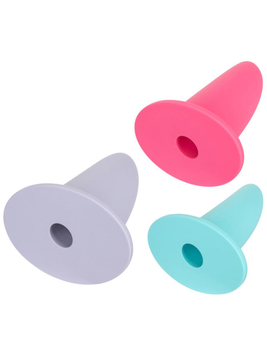 3-piece Silicone dilator set with expanded sizes for advanced gradual dilation, these dilators are the graduation set from the 5 piece she-ology set