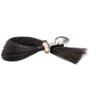 The classic stainless steel butt plug by our favourite butt-bling company, Rosebuds, is given a racy twist with this genuine black horsehair tail. The tail protrudes elegantly from the base of the plug, a good distance away to keep lubricant off the hair. It is extra long for greater swish factor, measuring almost 40cm!