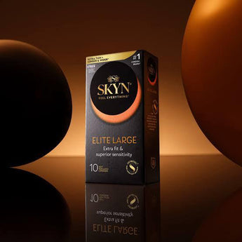 - SKYN® Elite Large condoms are longer and wider than our regular Elite condoms for an exceptionally sensitive and sensual feeling as well as enhanced comfort.