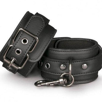 Think of hand cuffs, hogties, chains and bondage harnesses for example. The cuffs are made of faux leather lined with foam and have a soft, velvety feel, which makes them super luxurious to wear.