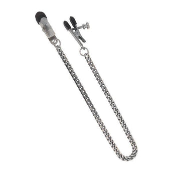 Adjustable Broad Tip Nipple Clamp with Chain: Silver