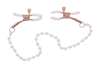 Take a tastefully tantalizing step into deeper sensations with the Peaches n’ CreaMe Pearl Nipple Clamps. Explore delicious sensitivity right where you want it most with dual adjustable clamps in stunning rose gold with pearl accents.