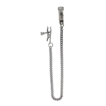 Introducing the Spartacus Adjustable Duck Bill Nipple Clamp Jewel Chain - the ultimate combination of pleasure and style! These adjustable nipple clamps are the perfect accessory for those who love the sensuous sensation of smooth, cool metal against their sensitive skin.