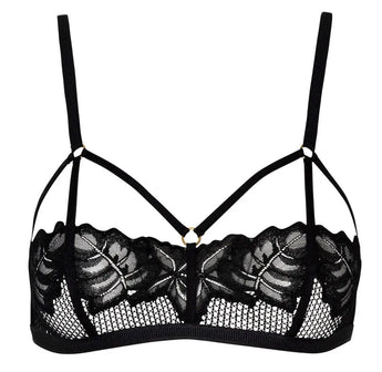Made with Leavers lace, tulle and gold components. Comfortable but seductive design. Perfect to match with any pearl thong of the London Collection.