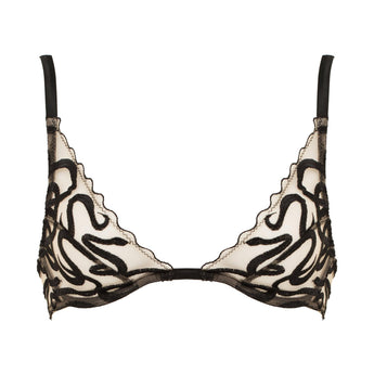 Utterly beguiling, yet perfect for everyday wear, the Naga Plunge Bra by Studio Pia features high-apex cups crafted from reinforced embroidered tulle. Bespoke embroidery is designed to frame every curve, while a jet black, cruelty-free silk satin trim exudes a beautifully luxurious finish.