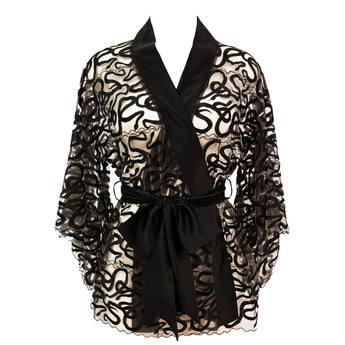 - Embroidered sheer tulle mini-length robe