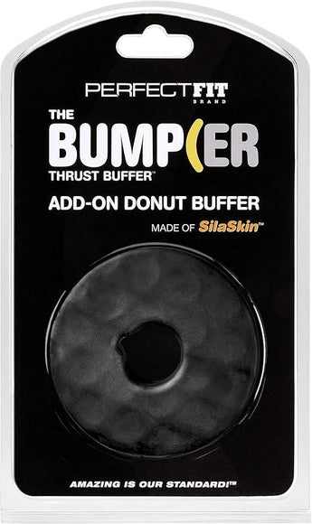 Additional Donut Cushion for The Bumper. The BumperTM Donut is part of the Bumper Thrust Buffer line-up. Designed to work with the Bumper to reduce penetration depth of the penis, it can also be used by itself in a number of applications. When used, as intended, as an additional cushion for the Bumper, it can be stacked to create greater effect of penis length reduction. Made of our incredibly soft and stretchy , it provides a large surface area for “bumping” into your partner. It can also be used on strap-ons to provide cushioning over the dildo-harness attachment point, or a cushion on the shaft of silicone dildos.
