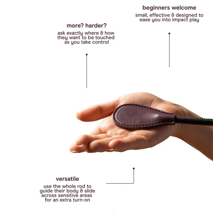 Slip the blindfold on and let your senses heighten as anticipation tingles through your skin. Surrender to the unknown and feel every touch come alive in the dark. Secure the padded cuffs around your wrists and surrender control. Explore the delicious tension between freedom and restraint. Brush the tassel along sensitive spots, letting its soft caress awaken desire. Slow, playful strokes build a wave of pleasure that makes you ache for more. A gentle flick of the crop sends shivers across your skin. Each tap and stroke teases the line between pleasure and pain, keeping you completely present in the moment. Blindfolded, cuffed, and at their mercy, the flick of the crop and the tantalising tassel will leave you breathless. Every sensation is magnified, pushing you to the edge of exquisite surrender.