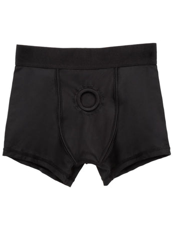 Fashioned like a pair of boxer briefs, these pants also double as a premium harness that can be worn comfortably all day long. Equipped with an internal pocket, it's the perfect pair of boxer briefs to secure a packer in place, should the occasion arise. Its form fitting design can be worn discreetly under your clothes, for minimal show through any type of clothes. The extra wide waistband is made for superior support, to stay on for as long as you need them, and to keep them up securely once you place a packer in the pocket. It has a double panel interior for easy access to your fave dildo, and the reinforced O-Ring stretches to accommodate most packers and dildos so you can equip your favourite without hassle and to playtime ASAP.