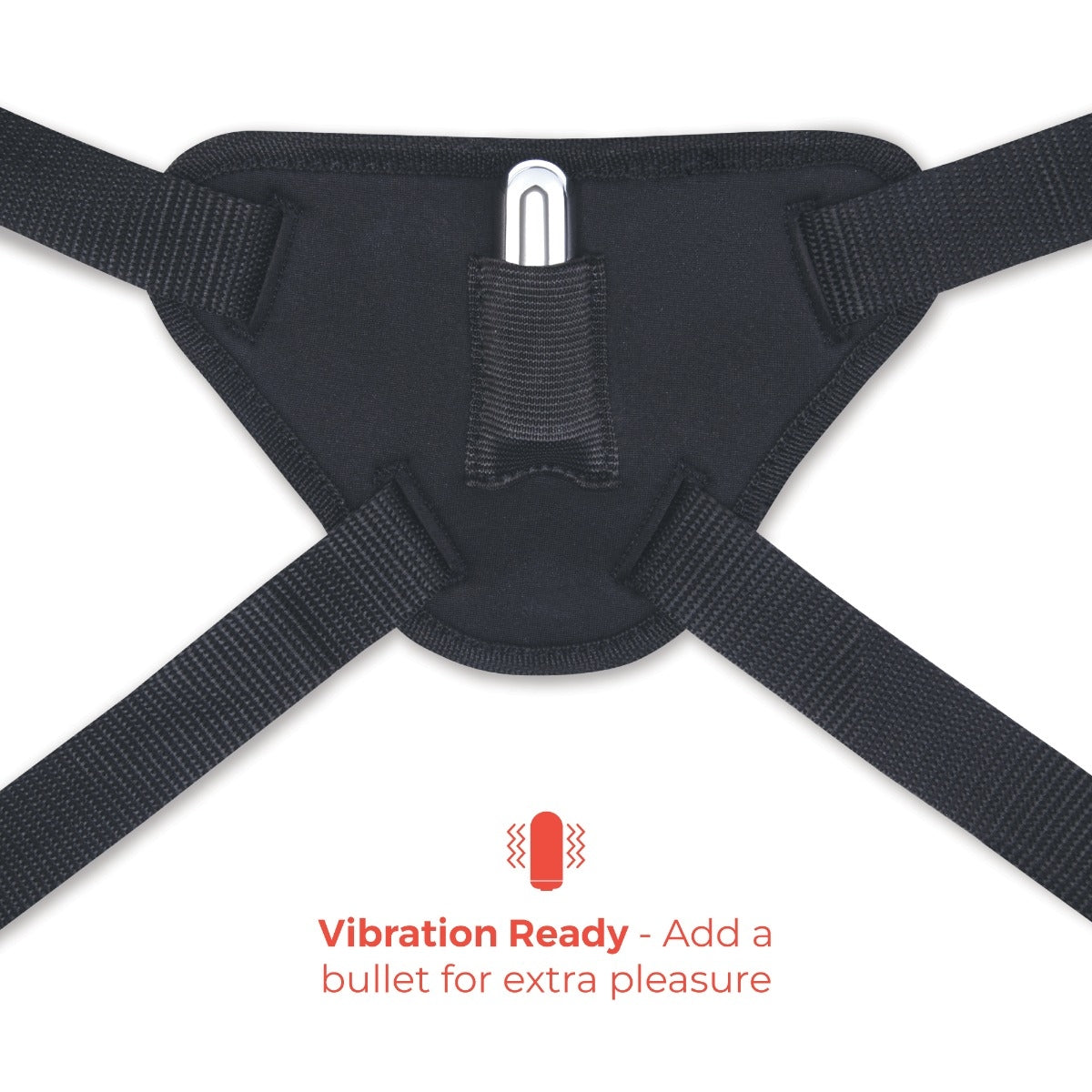 - Optional Vibration: The elastic pouch located behind the harness dildo base pad allows for the addition of a bullet vibrator (not included), enhancing your strap-on sexperience further.