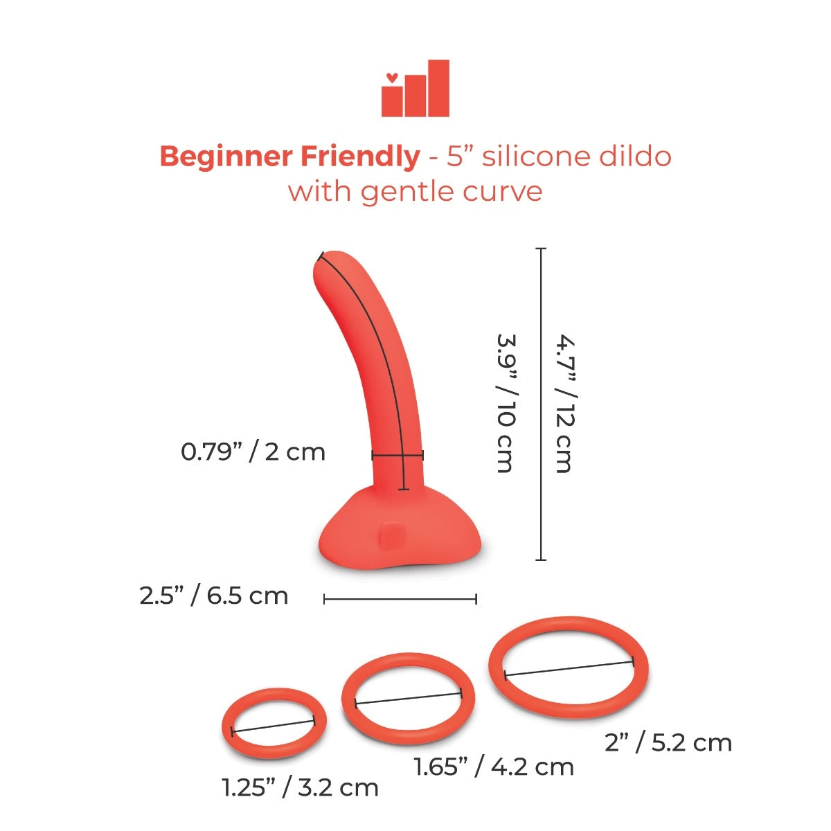 Designed specifically for those new to strap-on play, the b-Vibe Beginners Strap-On Harness Set features a sleek 5” silicone dildo peg that invites exploration and excitement.