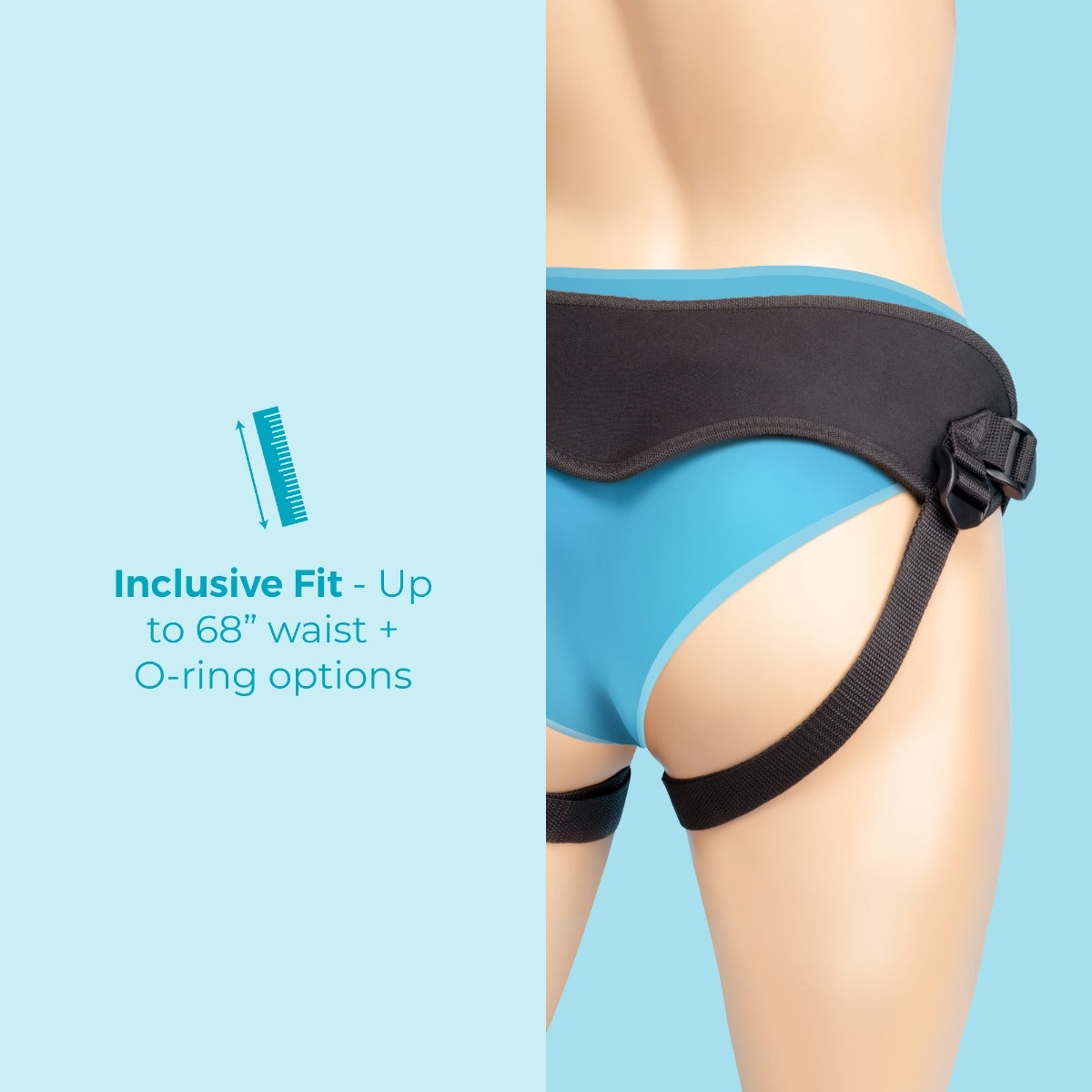 - Inclusive Fit: The integrated O-ring system makes switching sizes easy—it includes three interchangeable silicone O-rings to accommodate various dildo sizes. Meanwhile, the adjustable harness fits waists up to 68”, making it comfortable for most body types, shapes, and sizes.