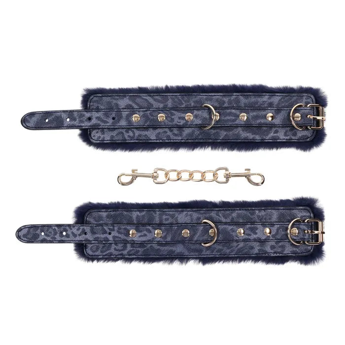 Embrace the allure of playful restraint with the Cougar Fur Handcuffs. Luxuriously lined with a rich blue faux fur and accented with gleaming gold hardware, these handcuffs are designed for sophisticated seduction. Ideal for adventurous play, they offer both comfort and style, ensuring your intimate moments are unforgettable.