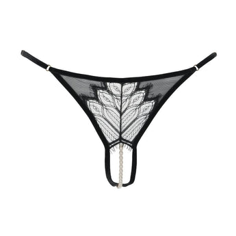 A delicate and beautifully constructed G-String made with leavers lace, elastic tulle and velvet.